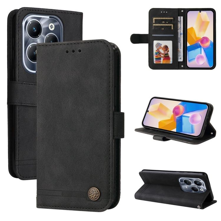 Funda de Cuero con Botones de Metal y Diseño Árbol de la Vida para Infinix Hot 40 y Hot 40 Pro (Negro)