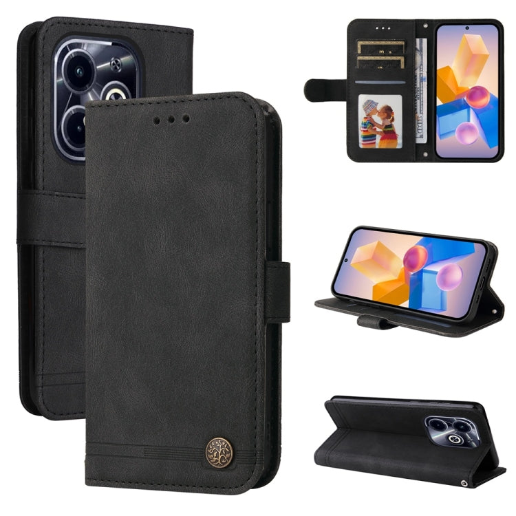 Funda de Cuero para Infinix Hot 40I con Botones de Metal y Diseño Árbol de la Vida (Negro)