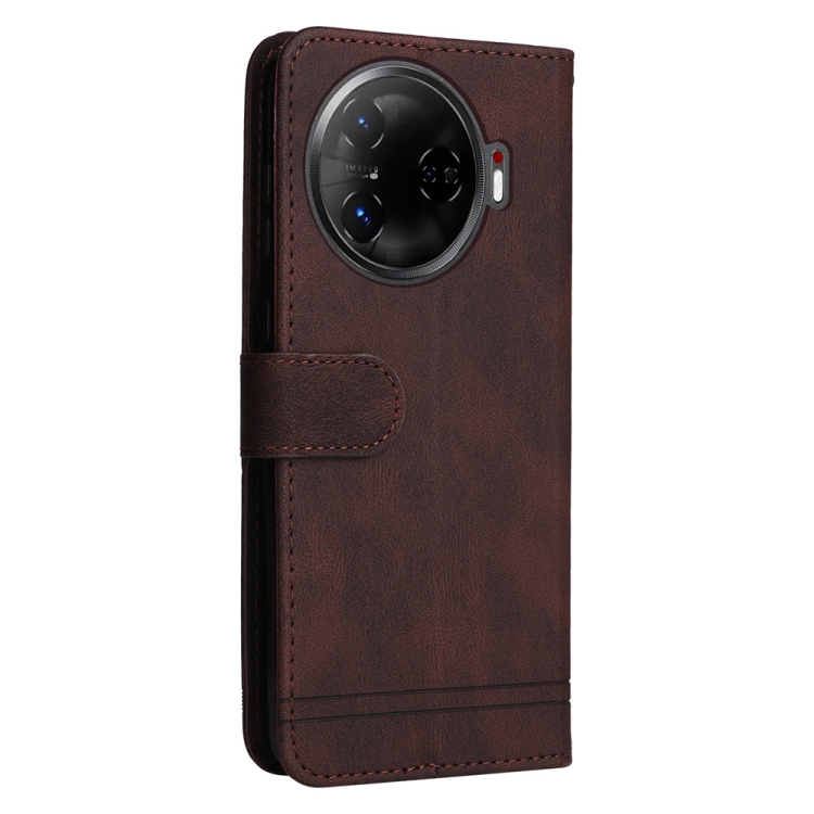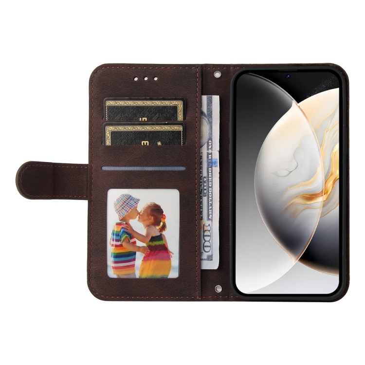 Funda de Cuero para Tecno Camon 30 Pro con Botones de Metal y Diseño Árbol de la Vida (Marrón)
