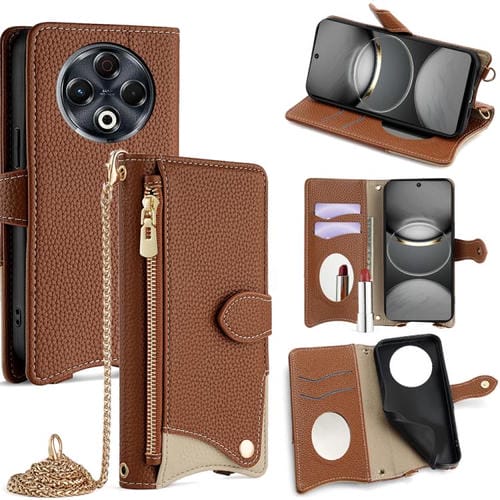Funda de Cuero para Tecno Spark 30 4G con Cadena Cruzada y Diseño Cola de Pez (Marrón)