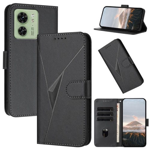 Funda de Cuero con Cierre de Hebilla y Diseño Triangular para Motorola Edge 40 (Negra)