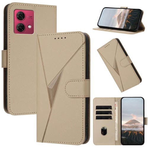 Funda de Cuero para Motorola Moto G84 5G con Cierre de Hebilla y Diseño Triangular (Dorada)