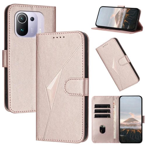 Funda de Cuero con Hebilla y Diseño Triangular para Xiaomi Mi 11 Pro (Oro Rosa)