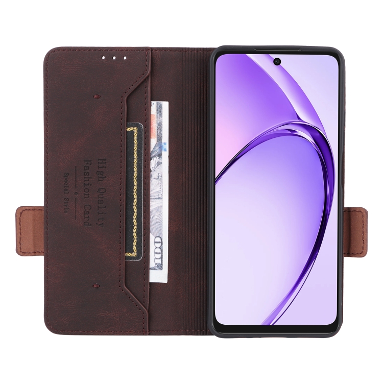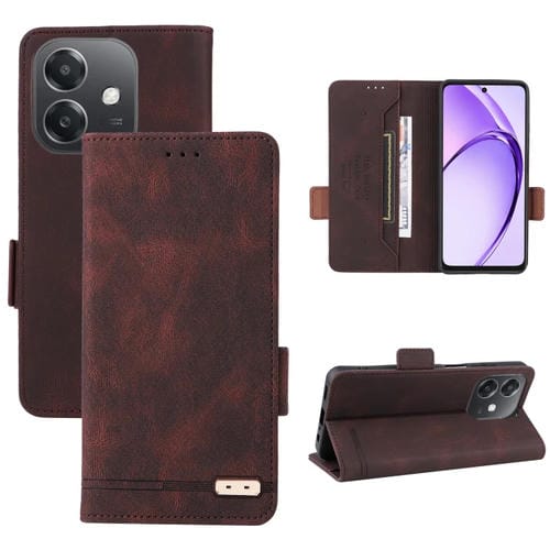 Funda de Cuero con Cierre Magnético para Teléfono Oppo A3X 5G India (Marrón)