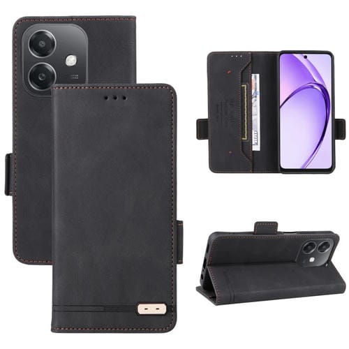 Funda de Cuero con Cierre Magnético para Teléfono Oppo A3X 5G India (Negra)