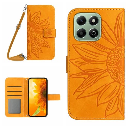 Funda de Cuero con Cordón para Honor 200 con Diseño de Girasoles y Tacto Inteligente (Amarillo)