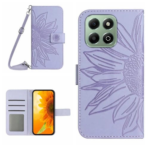 Funda de Cuero con Cordón para Honor 200 Diseño Girasoles Tacto Inteligente (Morado)