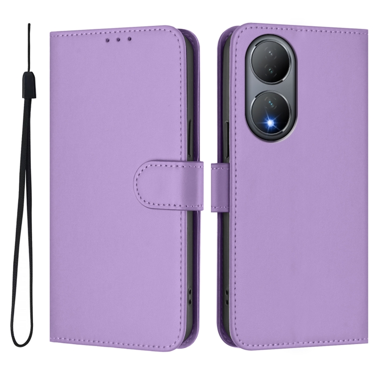 Funda de Cuero con Cordón para Teléfono con Sensación de Piel Global para Vivo Y100 5G (Morado Lavanda)