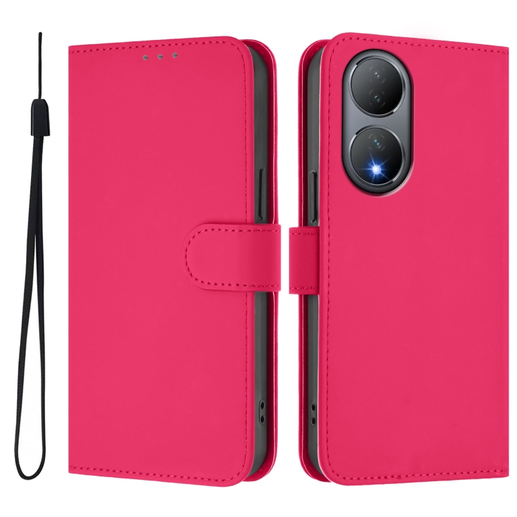 Funda de Cuero con Cordón para Teléfono con Sensación de Piel Global para Vivo Y100 5G (Rosa Rojo)