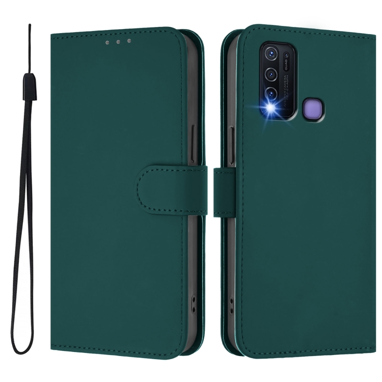 Funda de Cuero con Cordón para Teléfono con Sensación de Piel Global para Vivo Y30 4G (Verde Oscuro)