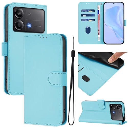 Funda de Cuero con Cordón para Teléfono Xiaomi Poco X6 Neo 5G con Sensación de Piel Global (Azul Cielo)