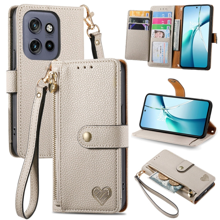 Funda de Cuero con Cordón y Cremallera Love para Motorola Moto S50 (Gris)
