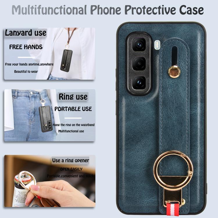 Funda de Cuero con Correa para El Brazo para Infinix Hot 50 Pro+ 4G X6880 (Azul)