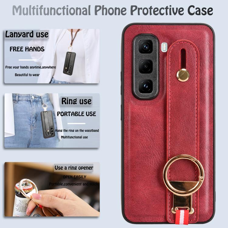 Funda de Cuero con Correa para El Brazo para Infinix Hot 50 Pro+ 4G X6880 (Rojo)