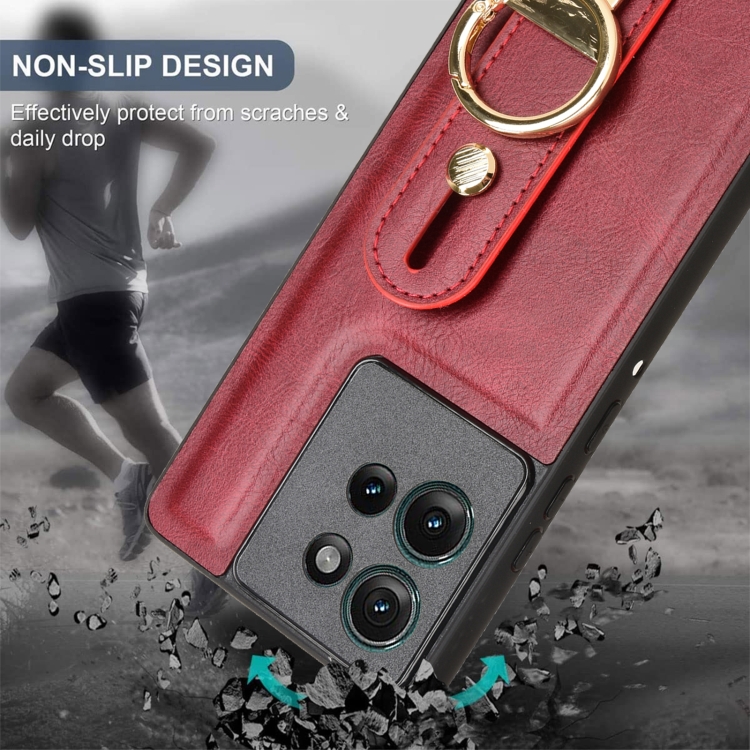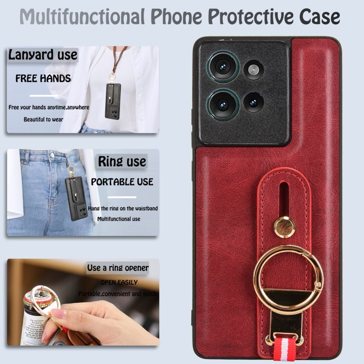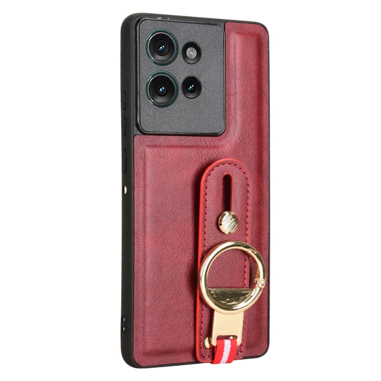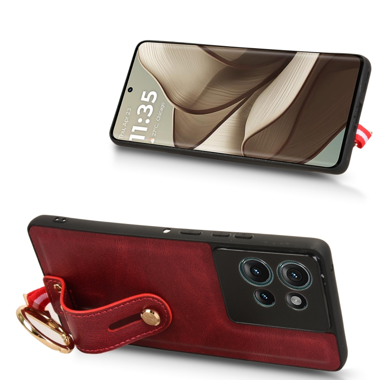 Funda de Cuero con Correa para el Cuello Motorola Edge 50 5G (Rojo)