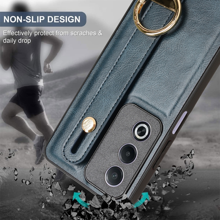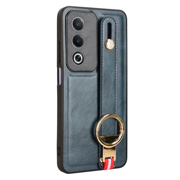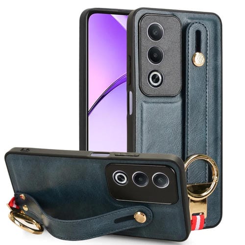 Funda de Cuero con Correa para la Muñeca para Oppo A3 Pro India (Azul)