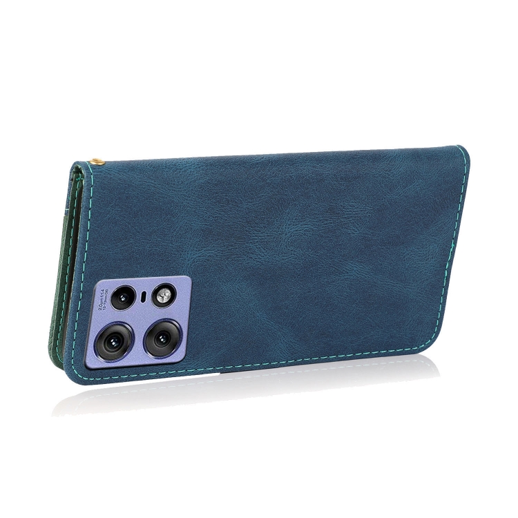 Funda de Cuero con Costuras Dos Colores para Motorola Edge 50 Pro (Azul y Verde)