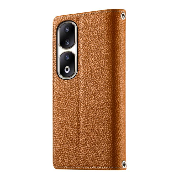 Funda de cuero con cremallera para Honor 90 Pro, con costuras, para múltiples tarjetas y correa corta (marrón)