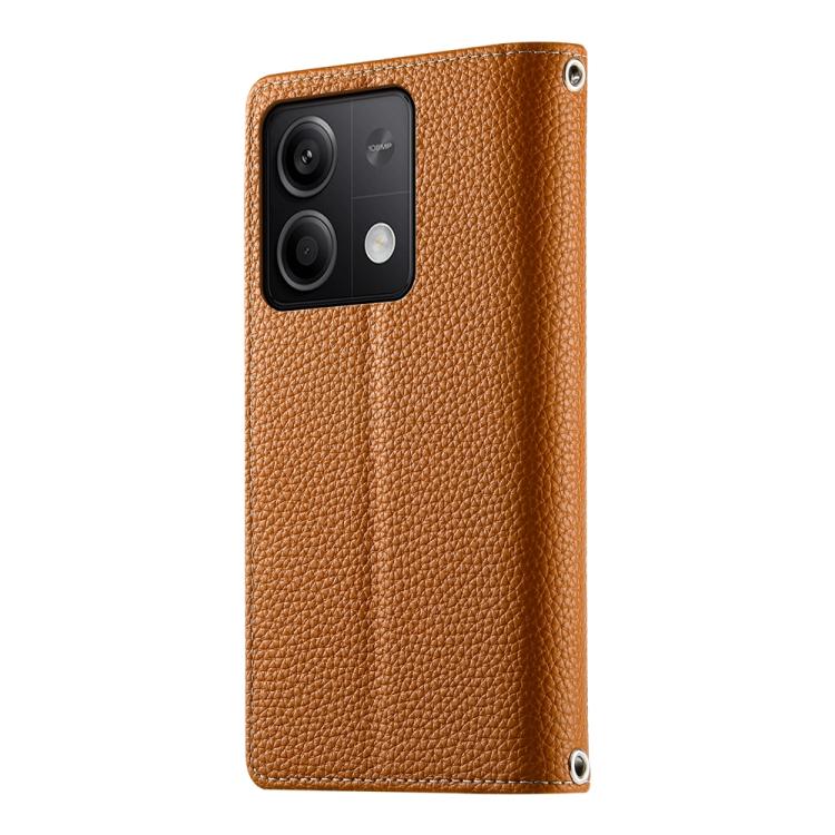 Funda de cuero con cremallera para Redmi Note 13 5G, con costuras globales y múltiples tarjetas, con correa corta (marrón)