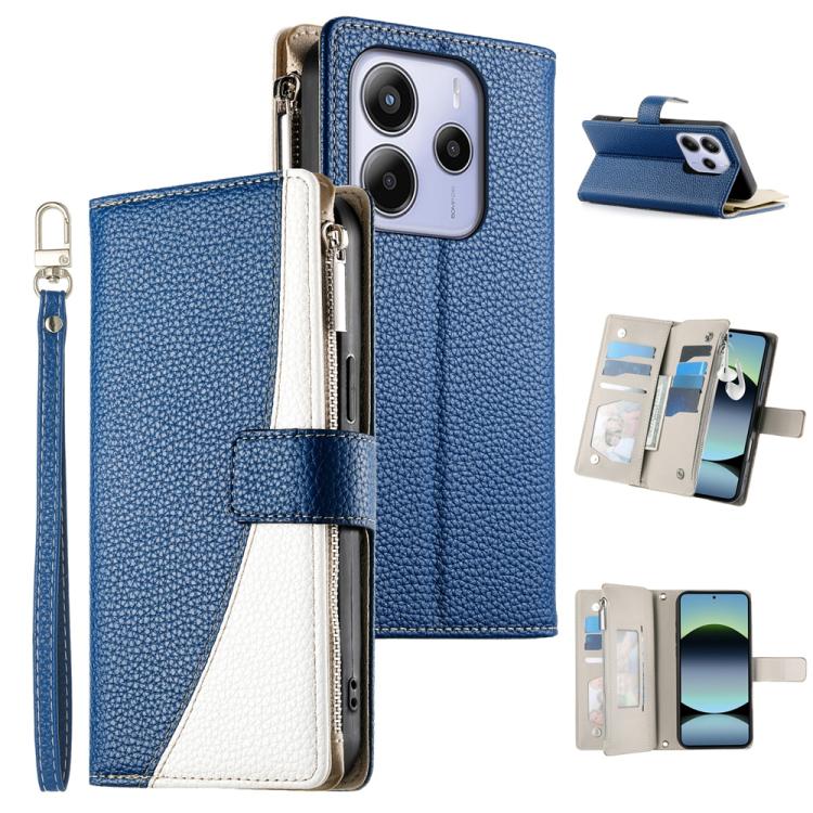 Funda de cuero con cremallera para Redmi Note 14 4G, 163,25 mm, con múltiples tarjetas y correa corta (azul oscuro)