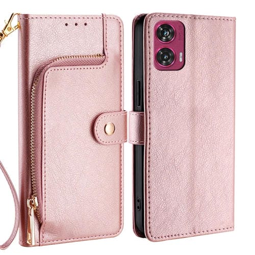 Funda de Cuero con Cremallera para Motorola Edge 50 Fusion 5G (Oro Rosa)