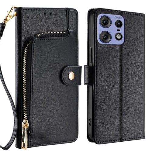 Funda de Cuero con Cremallera para Motorola Edge 50 Pro 5G (Negra)