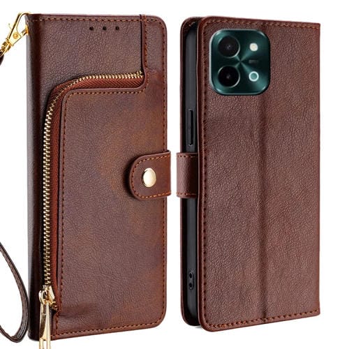 Funda de Cuero con Cremallera para Teléfono Vivo Y28 4G (Marrón)