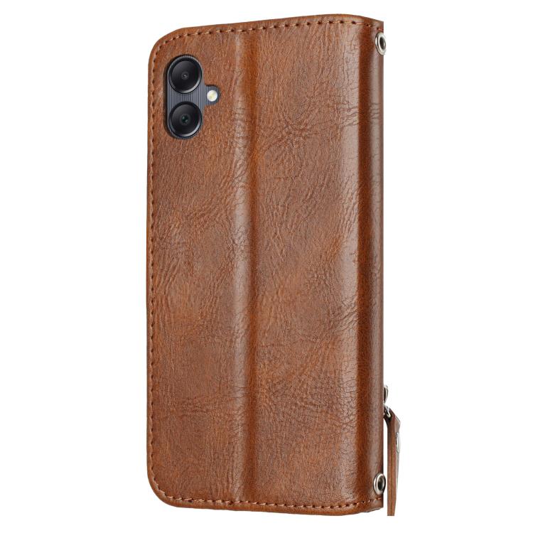 Funda de cuero con cremallera y diseño de cartera para Samsung Galaxy A07 4G / A06 4G (marrón)