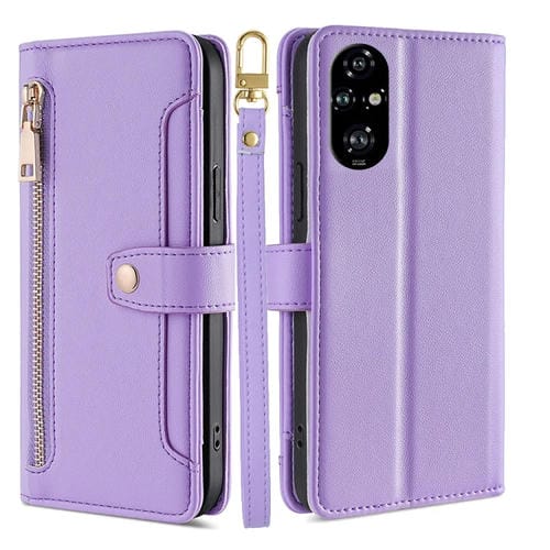 Funda de Cuero con Cremallera y Diseño de Oveja para Honor 200 Pro 5G (Morado)