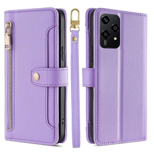 Funda de Cuero con Cremallera y Diseño de Ovejas para Honor 200 Lite 5G (Morado)