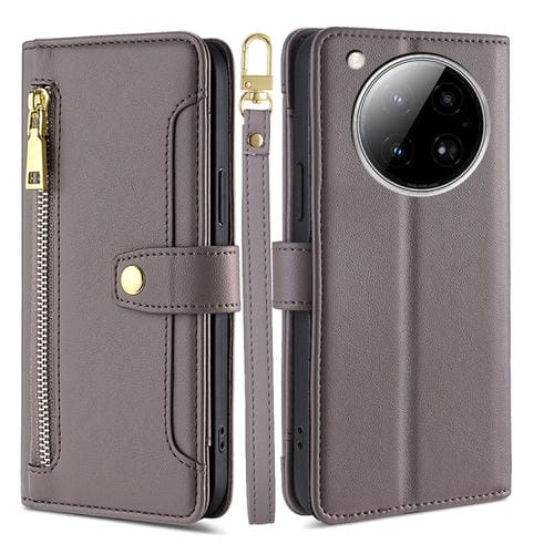 Funda de Cuero con Cremallera para Infinix Zero 40 4G Diseño Textura de Oveja (Gris)