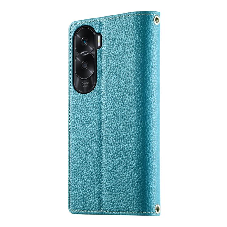 Funda de cuero con cremallera y múltiples tarjetas para Honor X50i / Honor 90 Lite, con costuras y correa corta (azul)