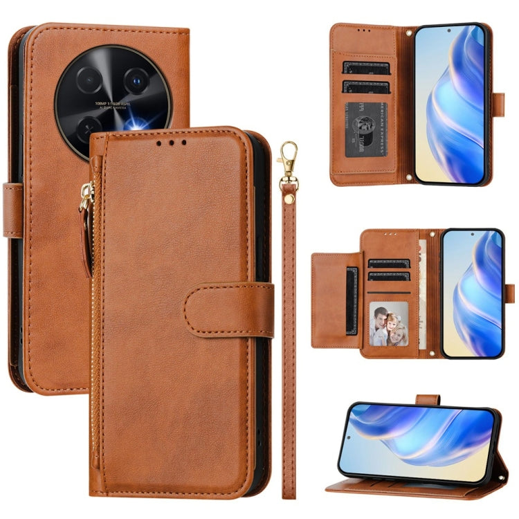 Funda de Cuero con Cremallera y Ranuras para Tarjetas para Huawei Nova 12I 4G (Marrón)