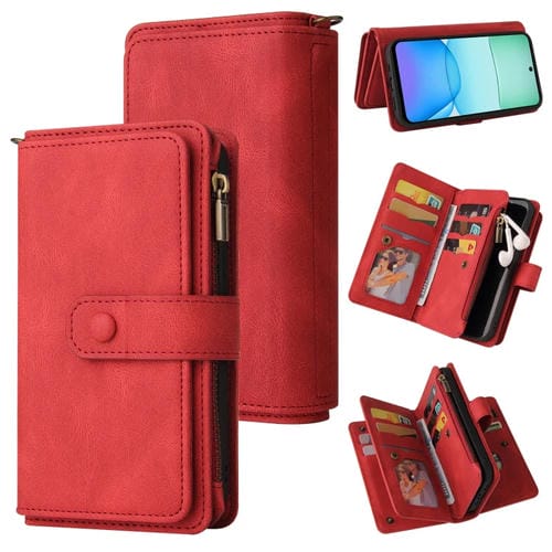 Funda de Cuero con Cremallera y Ranuras para Múltiples Tarjetas para Redmi 13 4G Global Skin Feel (Rojo)