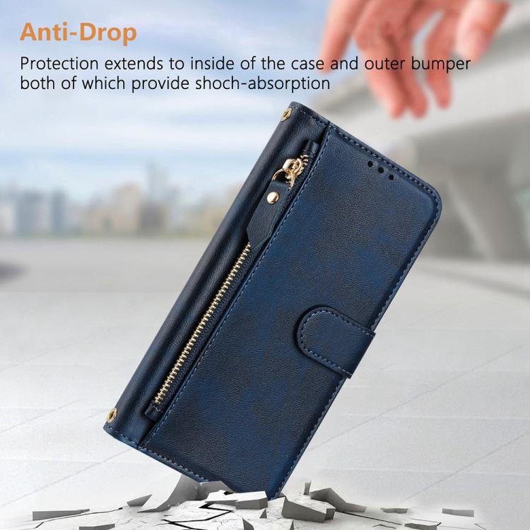 Funda de cuero con cremallera y ranuras para múltiples tarjetas para Xiaomi 15S Pro (azul)