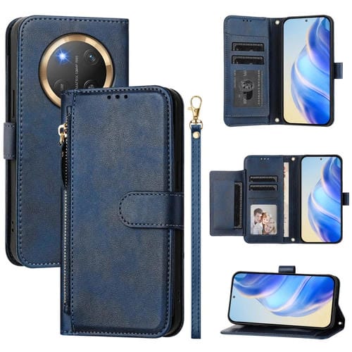 Funda de Cuero con Cremallera y Ranuras para Múltiples Tarjetas para Honor X9C (Azul)