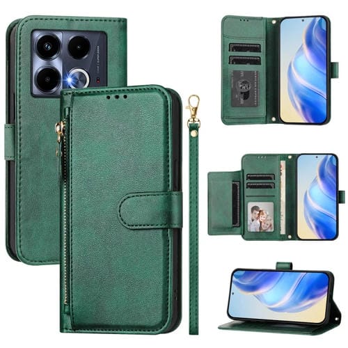 Funda de Cuero con Cremallera y Ranuras para Tarjetas para Infinix Note 40 4G (Verde)