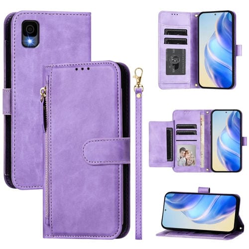 Funda de Cuero para TCL 30 Z T602Dl con Cremallera y Ranuras para Tarjetas (Morado)