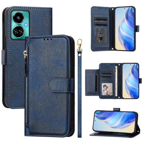 Funda de Cuero con Cremallera y Ranuras para Tarjetas para Tecno Camon 19 / Camon 19 Pro 5G (Azul)