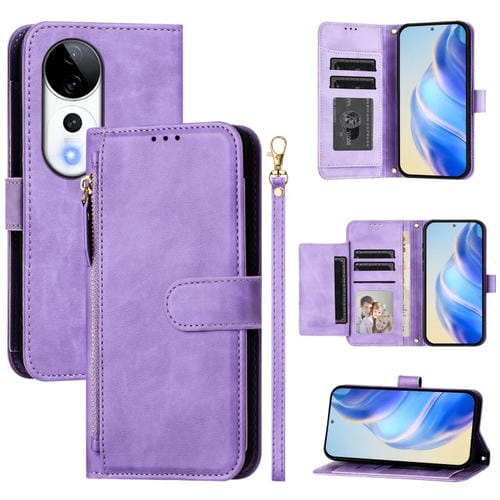 Funda de Cuero con Cremallera y Ranuras para Varias Tarjetas para Vivo S19 Pro (Morado)