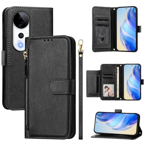 Funda de Cuero con Cremallera y Ranuras para Varias Tarjetas para Vivo S19 Pro (Negro)