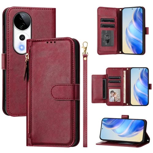 Funda de Cuero con Cremallera y Ranuras para Varias Tarjetas para Vivo S19 Pro (Rojo Oscuro)