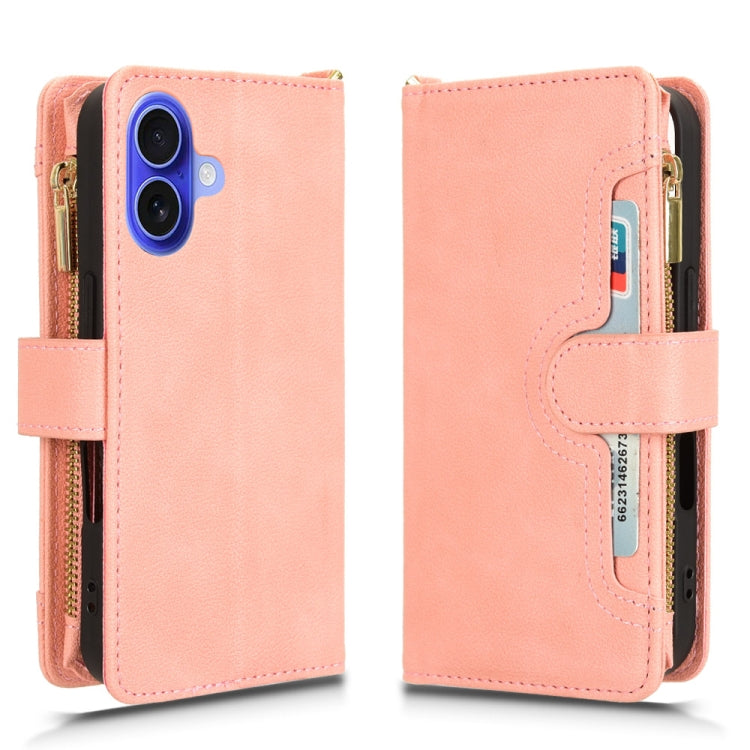 Funda de Cuero con Cremallera y Textura de Lichi para iPhone 16 Plus (Rosa)