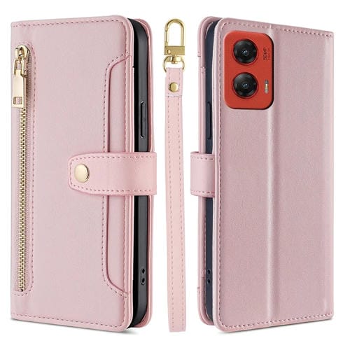 Funda de Cuero con Cremallera y Textura de Oveja para Motorola Moto G Stylus 5G (2024) (Rosa)