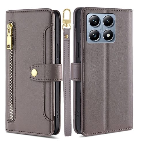 Funda de Cuero con Cremallera y Textura de Oveja para Xiaomi 14T Pro 5G (Gris)