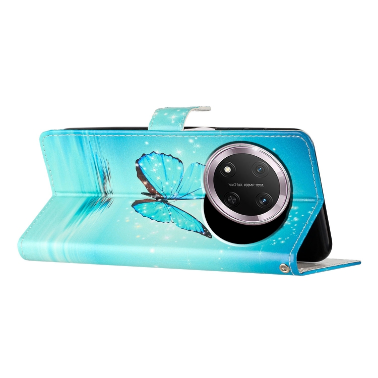 Funda de Cuero para Honor X9C 5G con Dibujo Mariposa Azul