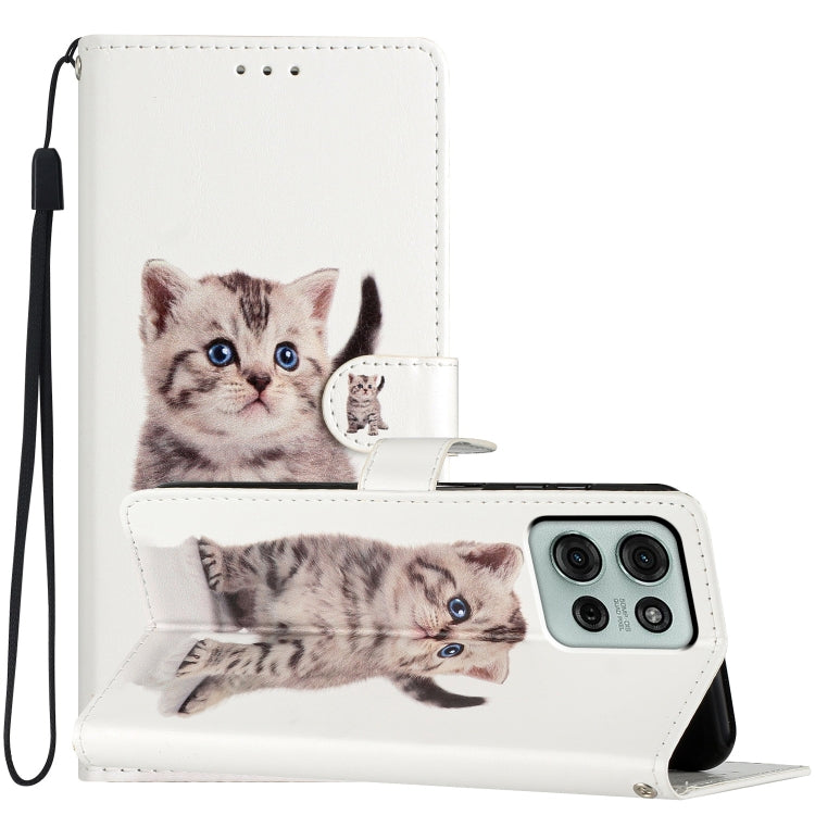 Funda de Cuero con Dibujo de Colores para Motorola Moto G75 5G (Gato Atigrado)