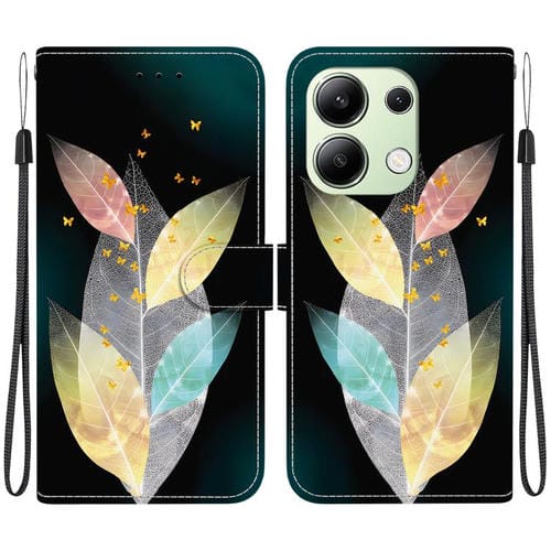 Funda de Cuero con Dibujo de Colores y Textura de Cristal Global para Redmi Note 13 4G (Hojas de Colores)