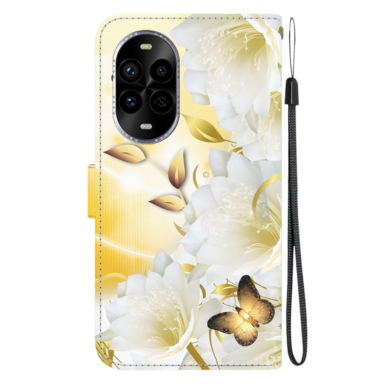 Funda de Cuero Huawei Nova 13 Pro con Dibujo de Colores y Textura de Cristal (Mariposa Dorada Epiphyllum)