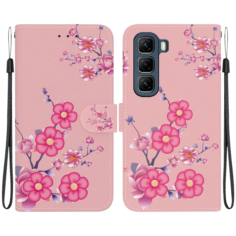 Funda de Cuero para Infinix Hot 50 5G con Dibujo de Colores y Textura de Cristal (Flores de Cerezo)
